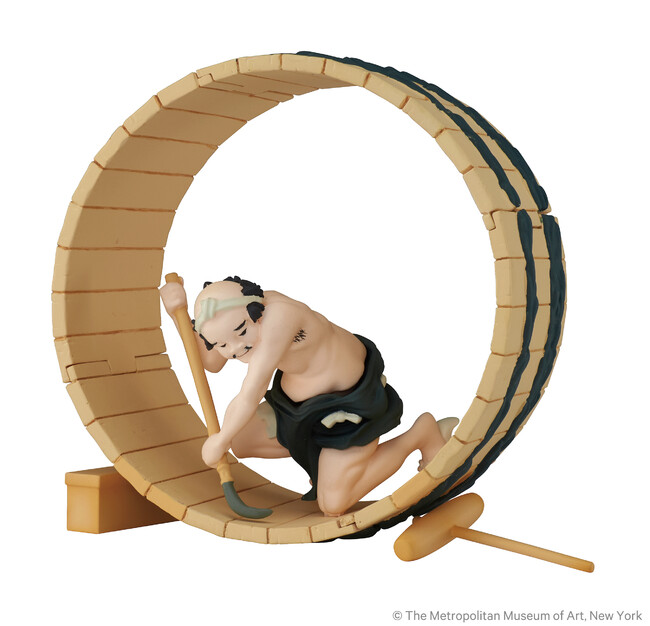 富士山と職人を樽の内側に配置した構図で描かれた北斎の代表作をダイナミックに立体化。