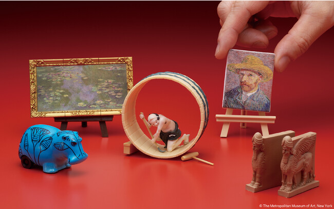 ラインアップは「麦わら帽子をかぶった自画像」(フィンセント・ファン・ゴッホ)、「冨嶽三十六景 尾州不二見原」(葛飾北斎)、「睡蓮」(クロード・モネ)、「人頭有翼獅子像と人頭有翼牡牛像」 、「カバの像」の全5種類で、著名な作品をミニチュアキャンバスや立体フィギュア、プルバックカーなど様々な切り口で再現した、ガチャならではの仕上がりとなっています。