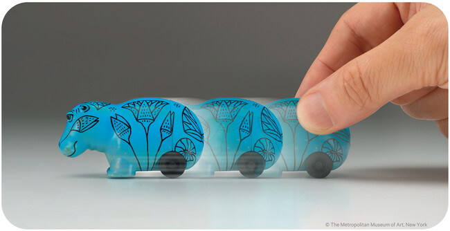 古代エジプトの副葬品のカバの像は、メットでは「ウィリアム」の愛称でお土産グッズとしても人気者。本商品ではプルバックカーにアレンジしました。
