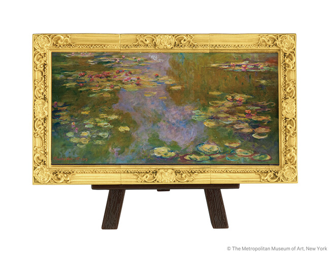 額パーツを組み立ててモネの生涯で残した連作の「睡蓮」のパノラマ絵画が楽しめます。