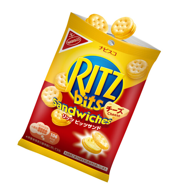 サクサクとした食感とほどよい塩味が特徴で、どんな具材とも相性抜群のクラッカー「リッツ」は、1971年に日本で発売されて以来、多くの方々に親しまれている、国内売上No.1*のクラッカーブランドです。これまで多くのお客様に「ひと口サイズが欲しい」などのお声をいただいたことから、今回「リッツ ビッツサンド チーズ」の発売に至りました。香ばしい風味、ほどよい塩味のクラッカーとまろやかなチーズクリームが絶妙なコンビネーションです。小腹満たしはもちろん、お酒のお供にもおすすめ。パクパクとついつい食べ進んでやみつきになりそうな味わいをどうぞお楽しみください。