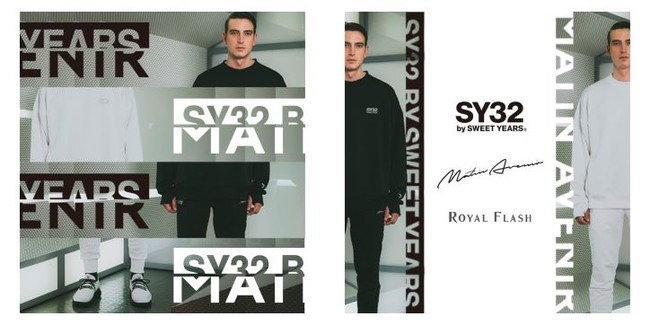 “MATIN AVENIR"のスタイリッシュな装いと"SY32"のスポーツmixスタイルを、“ROYAL FLASH”のラグジュアリーな感性で表現したスウェットのセットアップとTシャツ、スニーカーの計4型が登場。