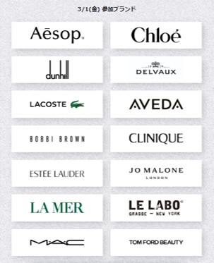 イソップ・ジャパン株式会社、ELCジャパン合同株式会社、LVMHファッション・グループ・ジャパン合同会社 ロエベ ジャパン、株式会社ラコステ ジャパン、ブルガリ ジャパン株式会社、リシュモン ジャパン株式会社、リモワジャパン株式会社