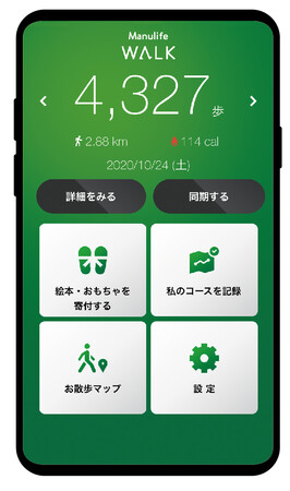 ユーザーが歩数を記録したり、散歩コースを設定したり、それらをソーシャル・ネットワーキング・サービス(SNS)で共有することができるなど、歩くことを楽しみ、習慣化するための工夫をこらした機能が搭載されています。寄付プログラムに参加すると、50万歩を達成すると1回、80万歩で2回、3回目以降は100万歩ごとに1回寄付