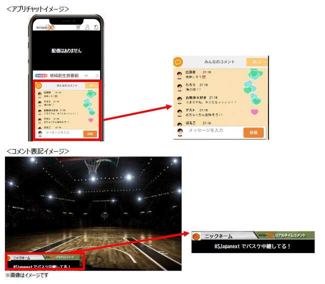 試合中、テレビの前の視聴者のみなさまから公式アプリ「つながるジャパネット」によせていただく応援コメントをテレビの画面下にリアルタイムで表示していきます。両チームへの応援をどしどしお寄せください!コメントは公式アプリからのみ受付となります(公式アプリでの配信はありません)