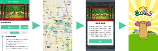 2016年11月より、株式会社ONE COMPATH(当時、株式会社マピオン)が運営している、「歩くことが楽しくなる」仕掛けが満載のウォーキングアプリです。アプリ内に登場する様々な住民キャラクターに話しかけると依頼が出され、クリアすると、地域名産品などが当たるプレゼントキャンペーンに応募できます。健康増進施策を進める自治体や企業、家族や友人同士などチームでの参加も可能。ユーザー数は100万人(2021年3月末現在)で、男女問わず20代から50代まで幅広くご利用いただいています。