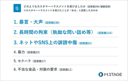 ・被害の最多は「暴言・大声」、ネット中傷も上位に