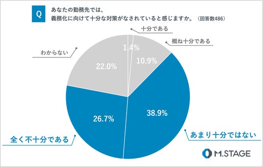 ・対策義務化の認知度は約半数、勤務先の対策状況に「不十分」との回答が約7割