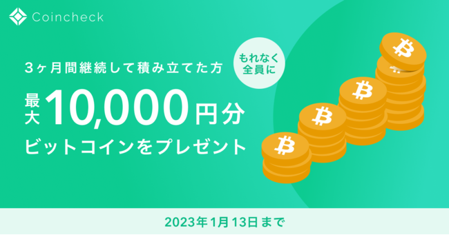 コインチェック株式会社(本社:東京都渋谷区、代表取締役:蓮尾 聡)が提供する暗号資産積立サービス「Coincheckつみたて」では、2022年12月12日より、積立金額に応じて最大1万円相当のBTCをプレゼントする「キャッシュバックキャンペーン」を開催します。