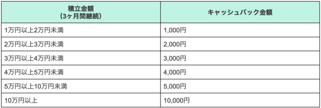 ・2ヶ月目もしくは3ヶ月目に積立金額を前月よりも増額もしくは減額された場合、最も積立金額が低かった月の積立金額および増額金額をキャンペーンの対象とします。場合によっては賞品付与の対象外となりますのでご注意ください