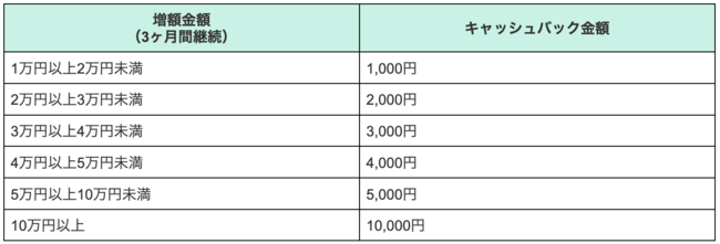 ・キャンペーン期間中、前月から増額された金額分がキャンペーンの対象となります