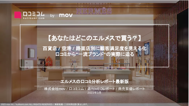レポートをくわしく見る(無料)→ https://academy.kutikomi.com/whitepapers/202303_hermes/?utm_source=pressrelease&utm_medium=prtimes&utm_campaign=202303_hermes※『口コミアカデミー 』にご登録いただくと、レポートの全容を無料でご確認いただけます。