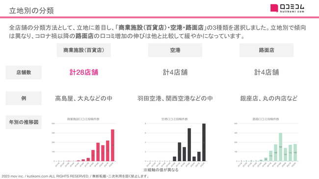 ■ 百貨店・空港・路面店別に口コミ数を見てみると?