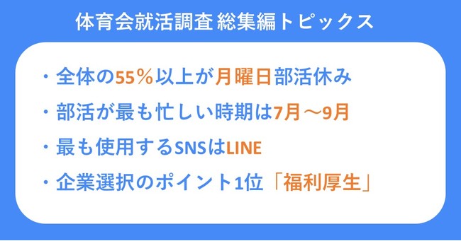 当社では、定期的に全国の体育会学生を対象として、就職活動に関連する調査を実施いたしました。2022年卒の調査に関しては、累計約7000件の回答をいただき、月ごとやエリアごとにレポートも発行してきました。