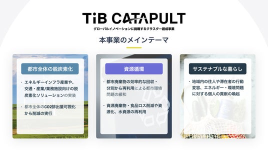 TIB CATAPULTは、都内の多様な産業や技術分野におけるスタートアップとの協働を促進し、グローバルなイノベーションクラスターの創出を目指す、東京都が主導するスタートアップ支援事業です。本事業では、スタートアップとの協働を促す6つの「イノベーションクラスター」を結成し、スタートアップとの協働プロジェクトを組成。 3年間で20件以上の協働事例の創出を目指し、東京都と協定を締結して活動を展開しています。