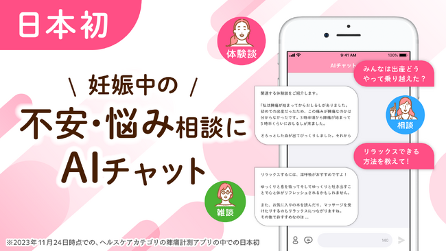 妊娠中の多くの女性は、日々変化する体調や出産までのプロセスに不安や心配事を抱えてしまいやすいです。そういった時にいつでも気軽に相談できる機能は不安な気持ちを和らげる存在になることを期待しリリースに至りました。