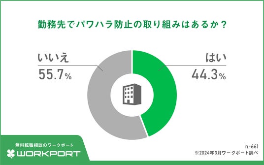 ■【勤務先のパワハラ防止策】対策している勤務先は44.3%のみ 相談窓口や社内研修など