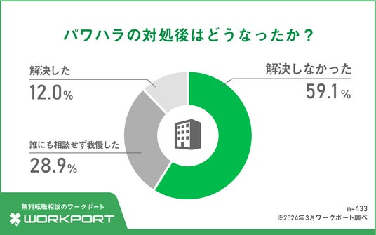 ■【パワハラ対処後の状況】上司・同僚・相談窓口など社内に助けを求めても 59.1%が「解決しなかった」