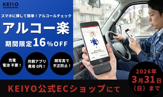 「いざという時に電池切れで測れない!」そんな現場のリアルな課題を解決する!スマホに直挿し型のアルコールチェッカー『アルコー楽』!期間限定16%OFF!法人向けまとめ買いキャンペーンを開始いたしました。
