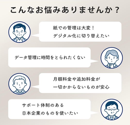 専用スマホアプリ、PC管理ソフト、そして月額利用料がすべて「無料」。高額なクラウド契約システムは不要です。