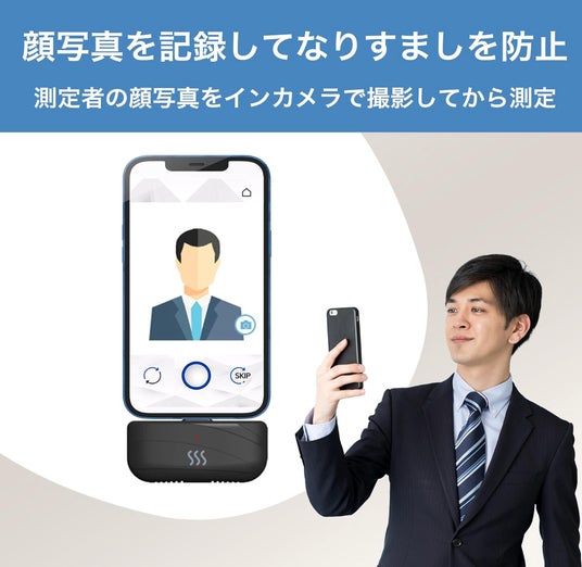 測定前のインカメラ撮影機能(スキップ可能)で、離れた場所からでも確実な本人確認ができ、コンプライアンス体制を強化します。