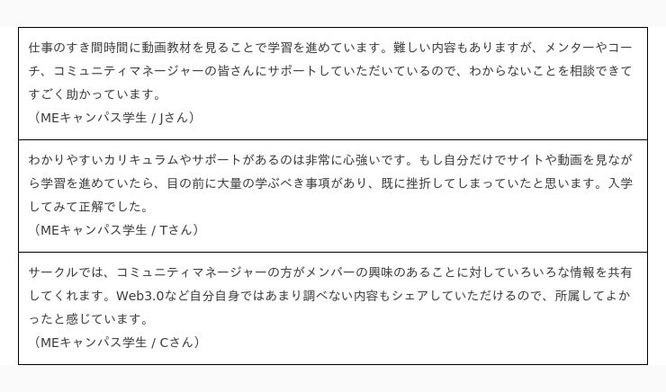 ■MEキャンパスでキャンパスライフを送る学生からの声