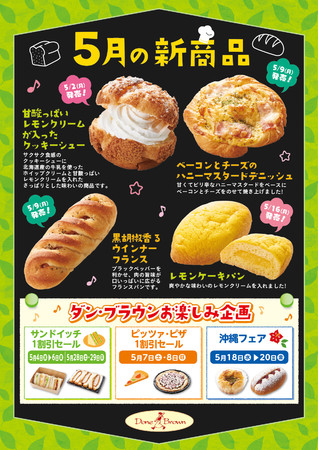 焼きたてパンの店「ダン・ブラウン」では、週ごとに新商品を発売いたします。暑くなるこの時期にさっぱりと食べられるスイートパンをはじめとした4種類の商品を新発売します。お食事の際にはもちろん、おくつろぎのひとときに、ダン・ブラウンの新商品を、是非ご賞味ください。