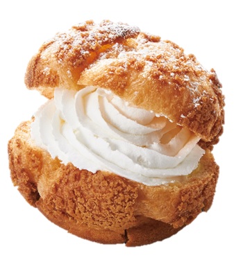 サクサク食感のクッキーシューに、爽やかな酸味のレモンクリームとさっぱりとした甘さのホイップクリームをたっぷりと絞りました。クリームたっぷりですが、酸味のあるレモンクリームが入っているので、最後まで飽きずに美味しく食べられます。