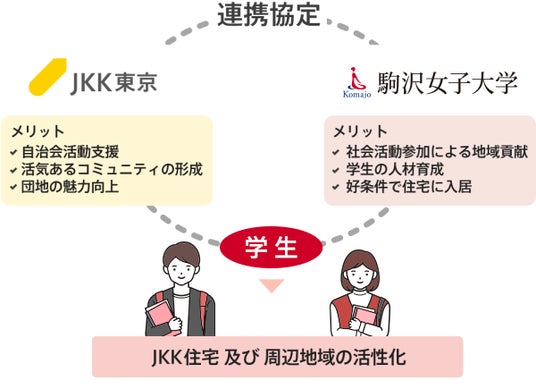 JKK東京(東京都住宅供給公社:東京都渋谷区、理事長:浜佳葉子、以下「JKK」)と駒沢女子大学・駒沢女子短期大学(東京都稲城市、学長:臼井実稲子、以下「駒沢女子大学」)は、地域コミュニティの活性化及び学生の人材育成を目的とした連携協定を令和7年7月31日(木曜日)に締結しました。