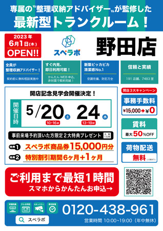 株式会社UKCorporation(本社:東京都港区)は「見学から契約、解約まで完全非接触・非対面!更にお申し込みからご利用まで最短1時間!」のトランクルーム【スペラボ】を6月1日(木)野田駅近くにオープン致します。
