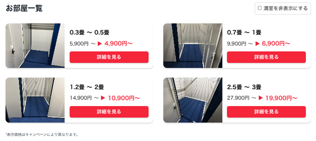 荷物以上に大きな部屋を借りてしまうことや、狭すぎて荷物が入らなかったなんていうトラブルを回避できます。