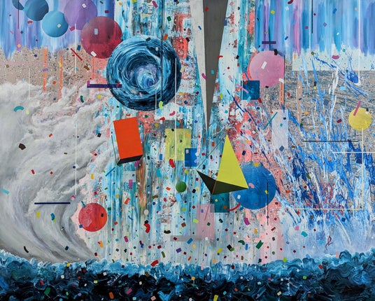 1987年に東京都生まれ、油絵を愛する父の影響で幼少期から絵画に親しむ。イギリス、インド、沖縄のミックスであり、異文化に触れるインターナショナルスクールと日本の公立学校で教育を受ける。卒業後は、レンタカーショップ、金融、バーテンダー、新聞配達、タクシードライバーなど様々な職歴を経て、2020年から画家として活動を開始。すべての人に物語があるように、ものや自然にも物語がある。それらは互いに影響し合い、変化していく。私の作品は、シンプルな幾何学的形状、自然の有機的要素、ナイフのストローク、スプラッシュなど、画面上に静と動を同時に共存させ、様々な物語が変化していく環境を視覚的に表現している。