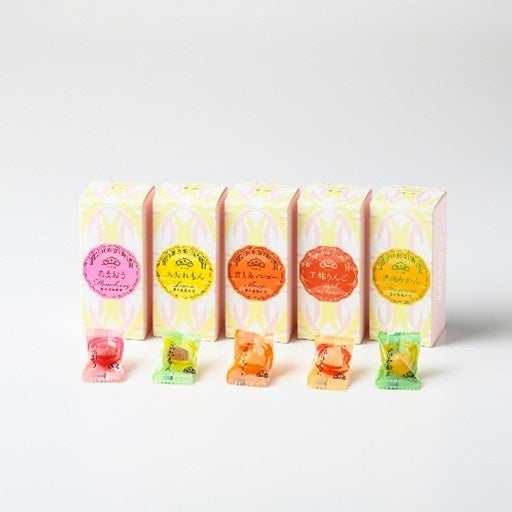 以来、有平糖の製法技術をもとに黒飴、抹茶飴、紅茶飴と続き、平成に入り、のど飴と国産果物使用、無香料・無着色のフルーツキャンディ「果汁飴」が榮太樓飴シリーズに加わりました。
