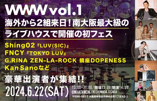 海外から2組来日!南大阪最大級のライブハウスで開催の初フェスShing02『LUV(SIC)』FNCY『TOKYO LUV』Kan Sanoなど豪華出演者が集結!ワタワン初開催の音楽フェス!