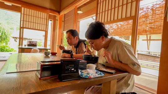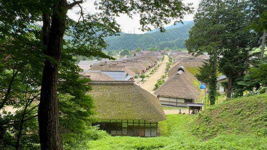 しばらくして2人が到着したのは、湯野上温泉駅。茅葺き屋根の駅舎が大きな特徴で、東北の駅百選にも選ばれた人気スポット。2人はそこからタクシーで会津西街道の宿場町として栄えた大内宿を訪れる。500メートルほどの間に、昔ながらの茅葺き屋根の家が何と30軒!しかも今も生活しているという。友近もその美観に、「絵になりますね。すっごい絵になる。素敵…」と、しばしうっとり…。住民たちの声にも耳を傾ける。さらに名物のねぎ蕎麦にも舌鼓。箸の代わりに長ねぎ1本を使うというワイルドな食事だが、生まれたきっかけに礼二も思わずうなる。