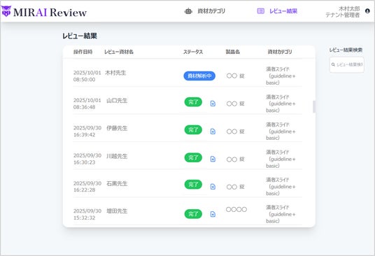 『MIRAI Review』は、製薬企業が医療関係者や患者向けに配布する各種資材について、製薬業界のルールを遵守しているかを生成AIが一次レビューするサービスです。2025年10月の提供開始以降、多くのお問い合わせをいただき、PoCの実施や本導入が進むなど高い関心が寄せられています。