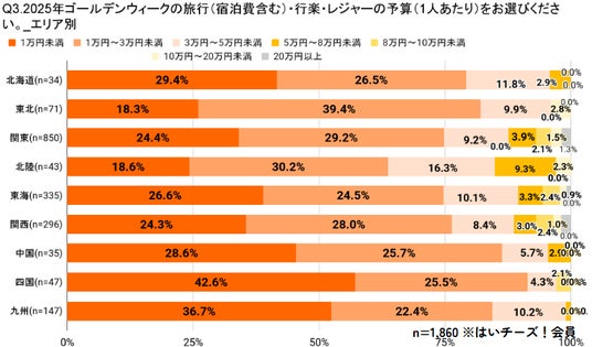 エリア別に予算を見ると、九州エリアで「1万円未満」の割合が他エリアに比べ多くなりました。関東、東海、関西エリアでは大きな差は見られませんでした。