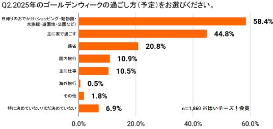 ■GWの過ごし方、約6割が「日帰りのおでかけ」を選択:「日帰りのお出かけ」「主に家で過ごす」が二大傾向として挙げられ、遠出よりも身近な場所で過ごすスタイルが中心になるようです。