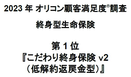 ・終身型生命保険商品で『こだわり終身保険v2(低解約返戻金型)』が第1位