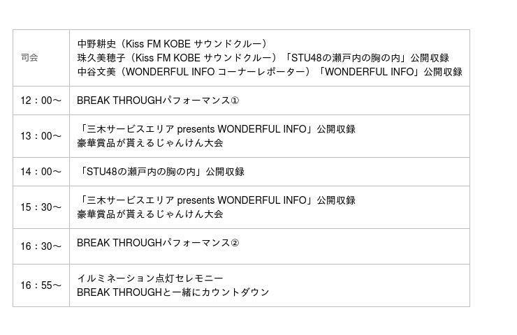 NEXCO西日本関西支社(大阪府茨木市、支社長:永田 順宏)と西日本高速道路サービス・ホールディングス株式 会社関西支社(大阪府吹田市、支社長:石田 英)は、E2山陽自動車道三木サービスエリア(SA)(上り線)で実施中のウインターイルミネーションとKiss FM KOBEのラジオ公開収録をコラボレーションしたイベント「Winter IlluminationWonderland」を開催します。
