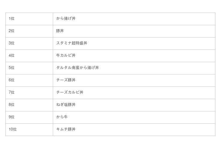 「魅力たくさん!リピート率が高い“牛丼以外”の吉野家の丼メニュー人気TOP10」( https://r10.to/h6VLPm )