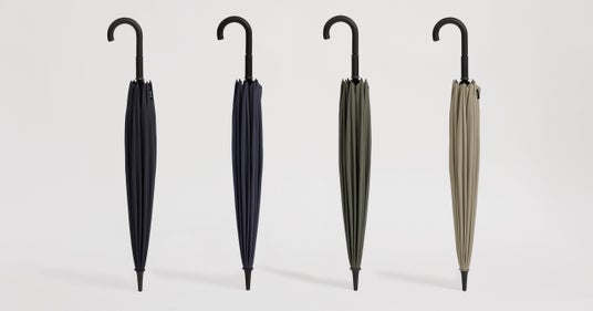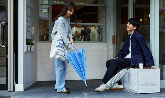 ベルトや留め具のない、とじるだけで一気にたたまる長傘。とじる動きに連動して骨が回転し、軸を中心に生地をくるくると巻き込む独自の機構を開発しました。最後に手で生地をまとめたり、ベルトで留める必要がなく、手を濡らさずにたたむことができます。雨の日の煩わしさを解消する新しい傘です。