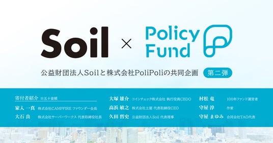 - 「SoilxPolicy Fund」:株式会社PoliPoliと公益財団法人Soilの共同企画
