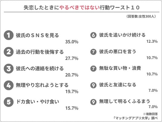 経験者300人の声から、立ち直るために「やってよかった行動」と、失恋時には逆効果の「やるべきではない行動」が明らかに!