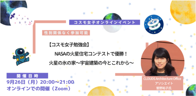 株式会社Kanatta(東京都目黒区、代表取締役社長:井口恵)が運営する「コスモ女子」は、9月26日(水)に宇宙建築に関するオンライン勉強会を開催しました。