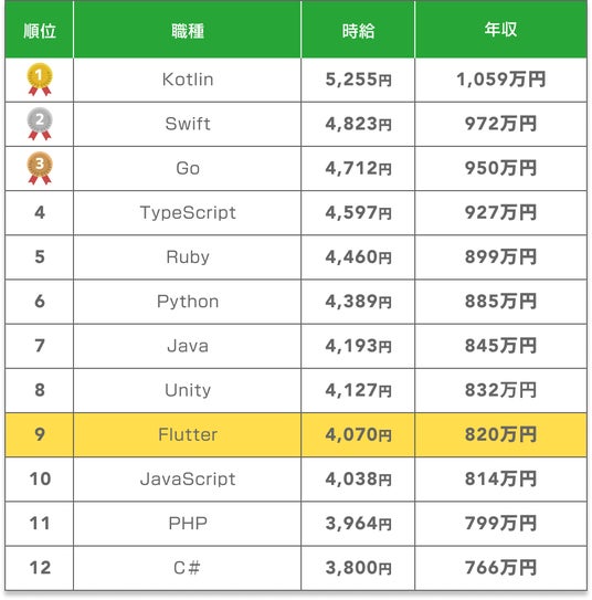 ・Flutter案件の平均年収820万円