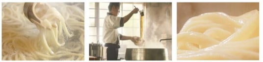 技と感性を磨いた「麺職人たち」が、100%国産の小麦粉を毎日打ち、その場で麺を切って、茹でて、つくりたてをお客さまに提供しているからこそ、独自のもちもちの食感とおいしさを守り続けることができているのです。