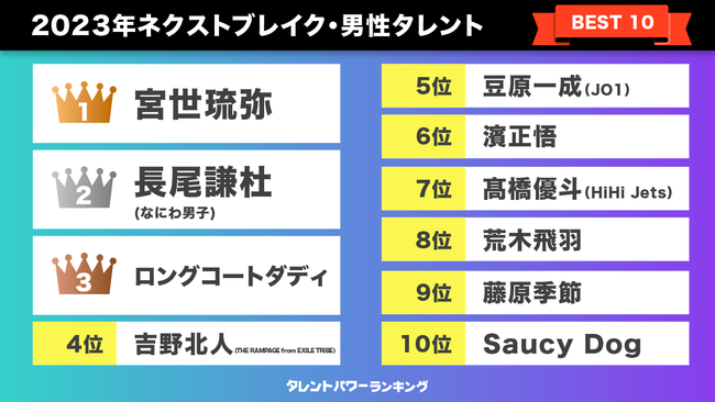 【2023年版】 タレントパワーランキングが選ぶネクストブレイク・男性タレント&女性タレントBEST10