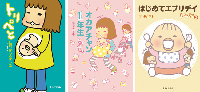 「リラックマ」キャラ原案者・コンドウ アキが描く育児マンガ『トリぺと8 きょうも あしたも あさっても』を12月16日に発売しました。刊行は主婦と生活社。