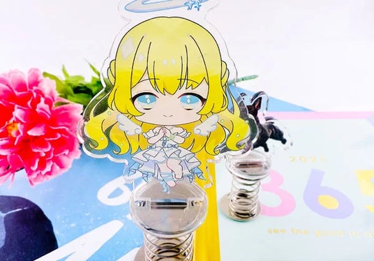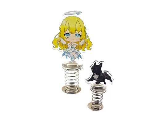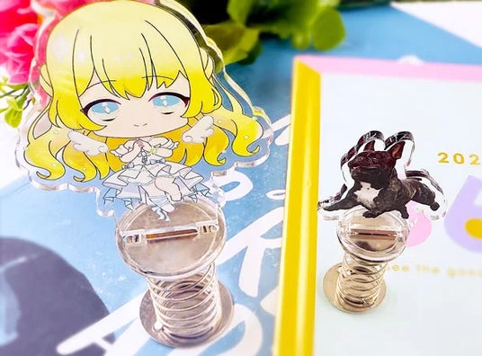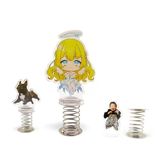 オリジナルのスプリングアクリルスタンドは、デスク周りやイベントブースでも注目の的!動きのあるディスプレイが空間を華やかに彩ります。